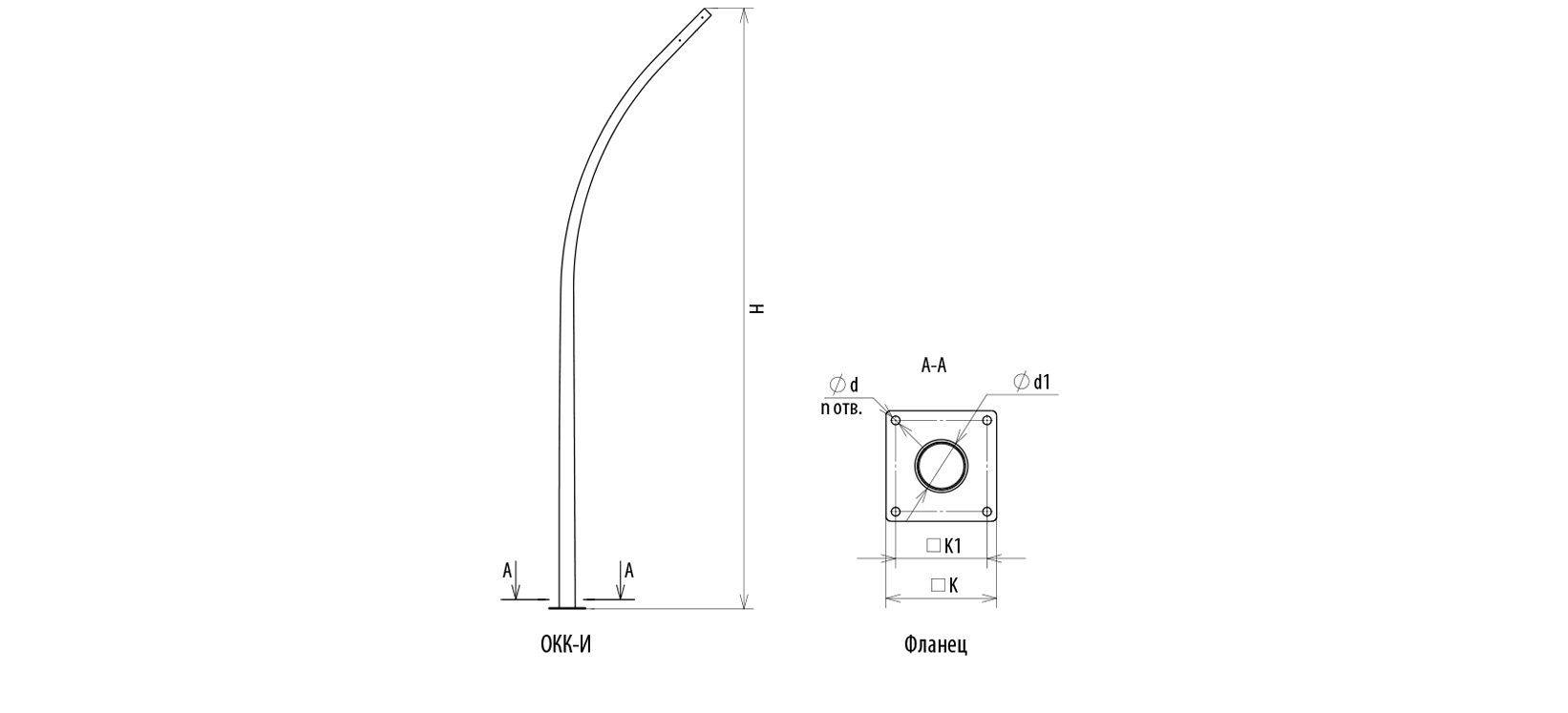 Декоративные фланцевые изогнутые опоры ОКК-И, выполненные из стали, применяются для освещения парков, скверов и городских пространств. Опоры изготавливаются из листовой стали конической формы методом гибки. Покрытие способом горячего цинкования по ГОСТ 9.307-89, СП 28.13330.2017 обеспечивает гарантию длительного срока эксплуатации.