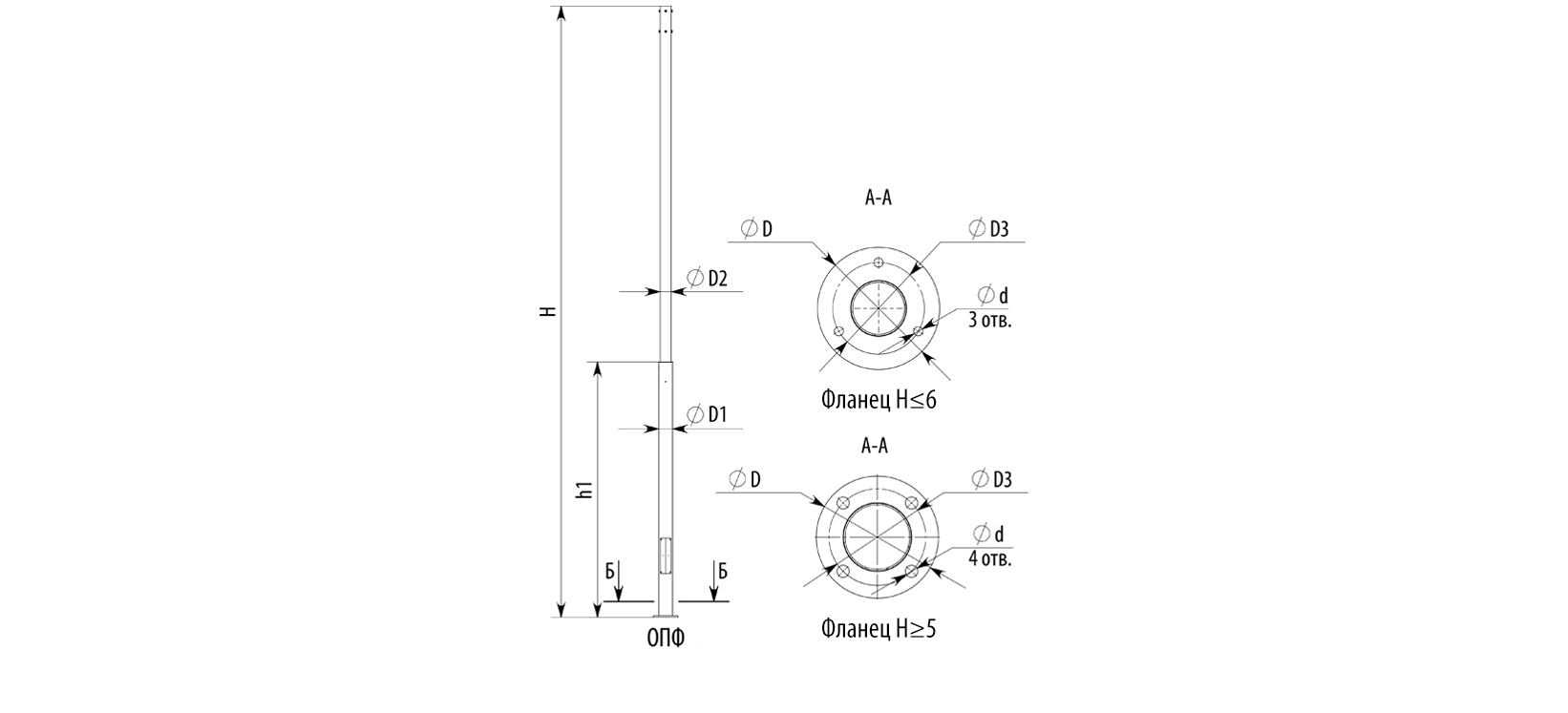 Несиловые трубчатые опоры прямостоечные фланцевые (ОПф) широко применяются для уличного функционального освещения, также их можно встретить в зонах отдыха, коттеджных поселках.