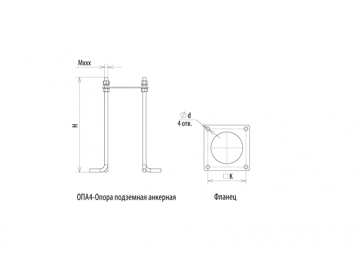 | ОПА4-К190-2 | Закладная опора ОПА4-К190-М16 | 0,4 | 190 | 18 | 4 | КК1-ОПА4-М16 | ОГК (3м) |