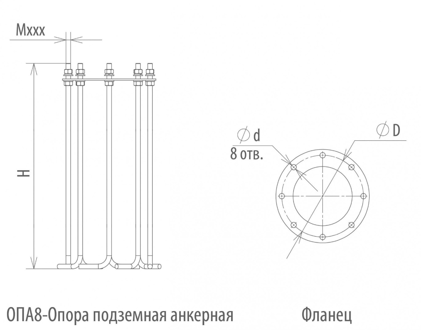 | ОПА8-d280-1 | Закладная опора ОПА8-d280-М16 | 2,0 | 280 | 18 | 8 | КК1-ОПА8-М16 |