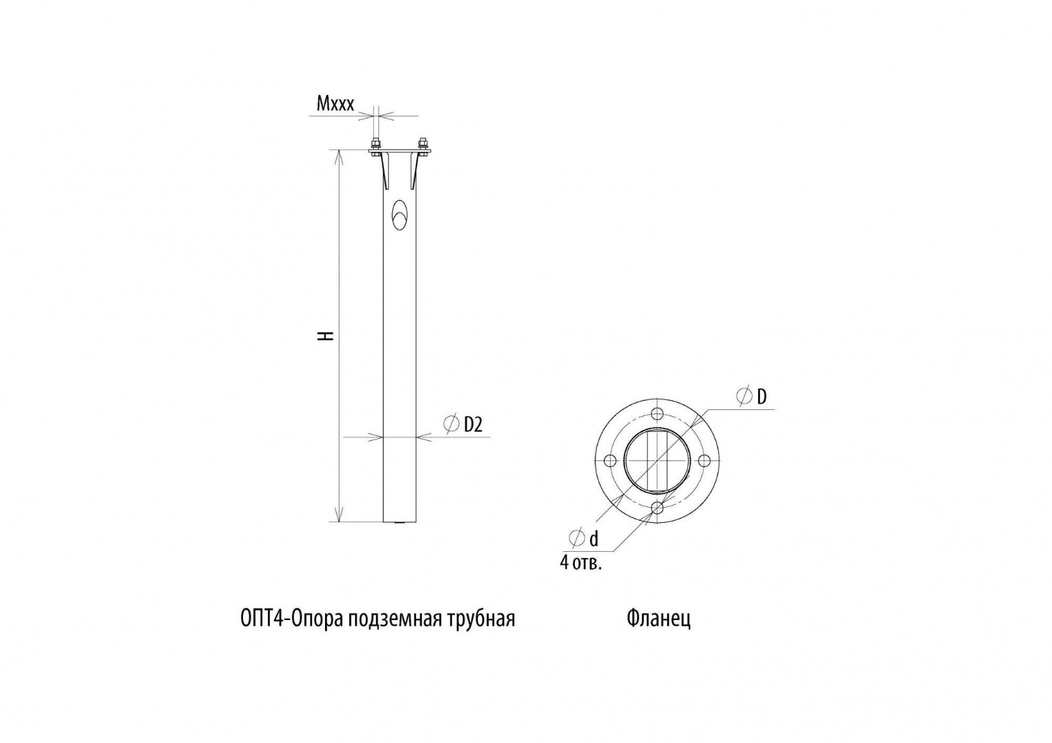 | ОПТ4-d220-4 | Закладная опора ОПТ4-d220-М20 | 1,3 | 114 | 220 | 22 | 4 | КК1-ОПТ4-М20 | |