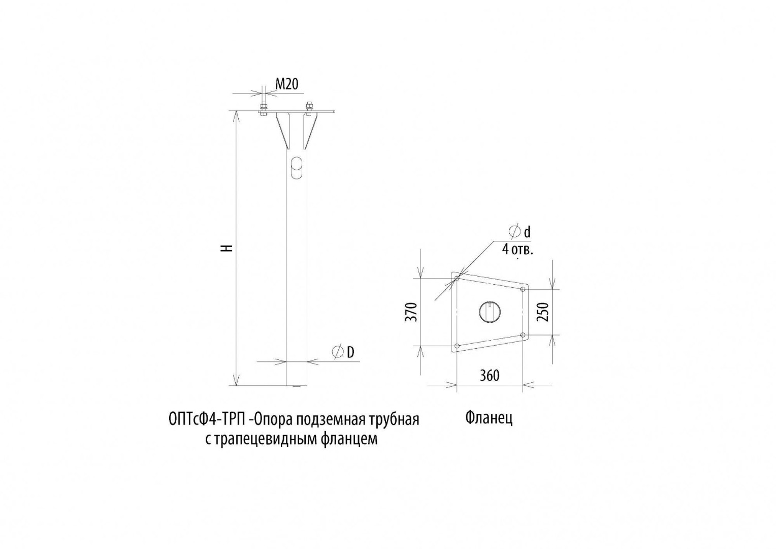 | ОПТсФ4-ТРП-250-370-360-1 | Закладная опора св-ка Фокус ОПТсФ4-ТРП-250-370-360-М20 | 1,5 | 114 | 250-370-360 | 22 | 4 | КК1-ОПТ4-М20 |