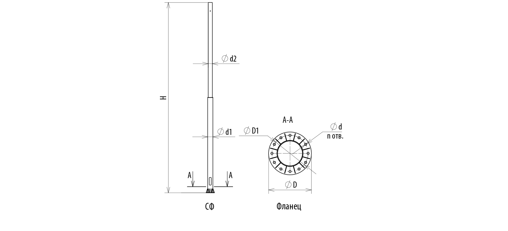 Силовые трубчатые фланцевые опоры СФ (ОСФ, ОСФТ) предназначены для установки на магистральных дорогах, улицах городов, площадях.